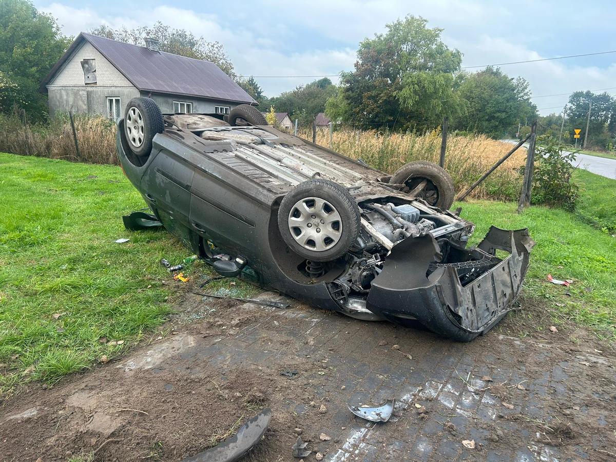 Oficer dyżurny krasnostawskiej komendy otrzymał dzisiaj około godziny 7:30 zgłoszenie, z którego wynikało, że doszło do dachowania Peugeota w miejscowości Orłów Drewniany.