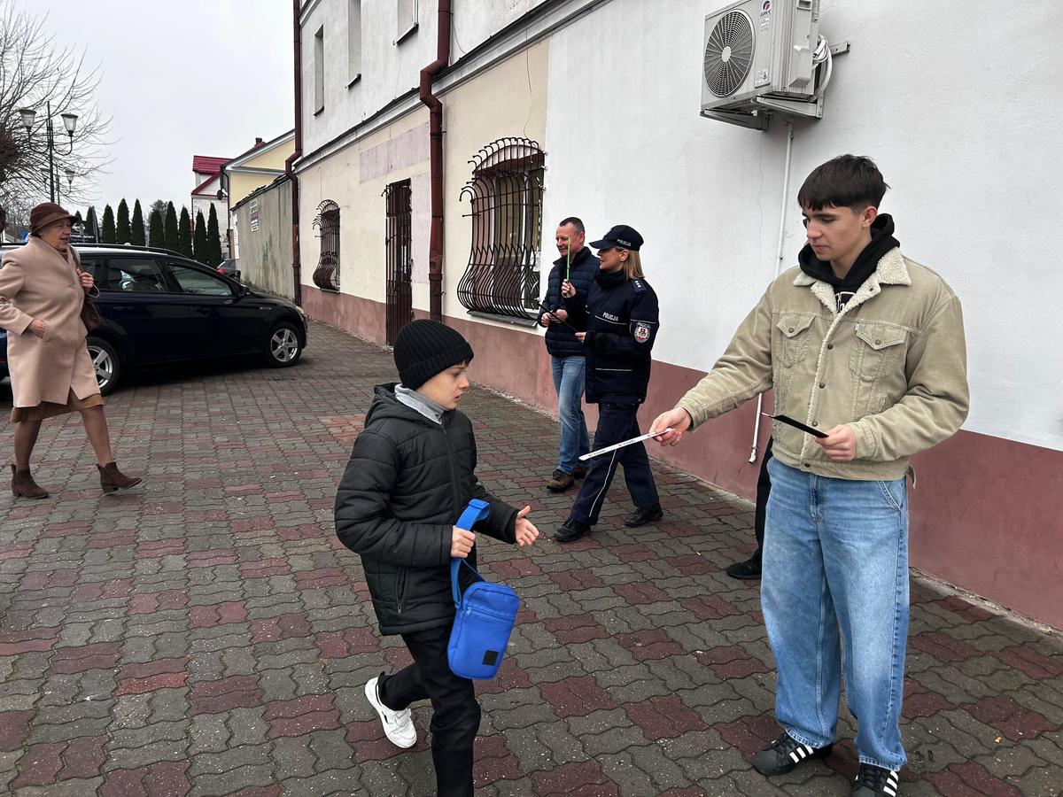 Równolegle na terenie miasta Krasnystaw policyjny profilaktyk wspólnie z przedstawicielami Młodzieżowej Rady Miasta Krasnystaw oraz radnym Rady Miasta Krasnystaw Marcinem Wilkołazkim prowadziła akcję kierowaną do pieszych. Radni wraz z funkcjonariuszką rozdawali ulotki promujące ostrożność na drodze oraz elementy odblaskowe, zachęcając mieszkańców do noszenia ich po zmroku oraz wszędzie tam, gdzie widoczność jest ograniczona. Podczas rozmów podkreślano, że nawet niewielki odblask może uratować życie, znacząco zwiększając widoczność pieszego.
