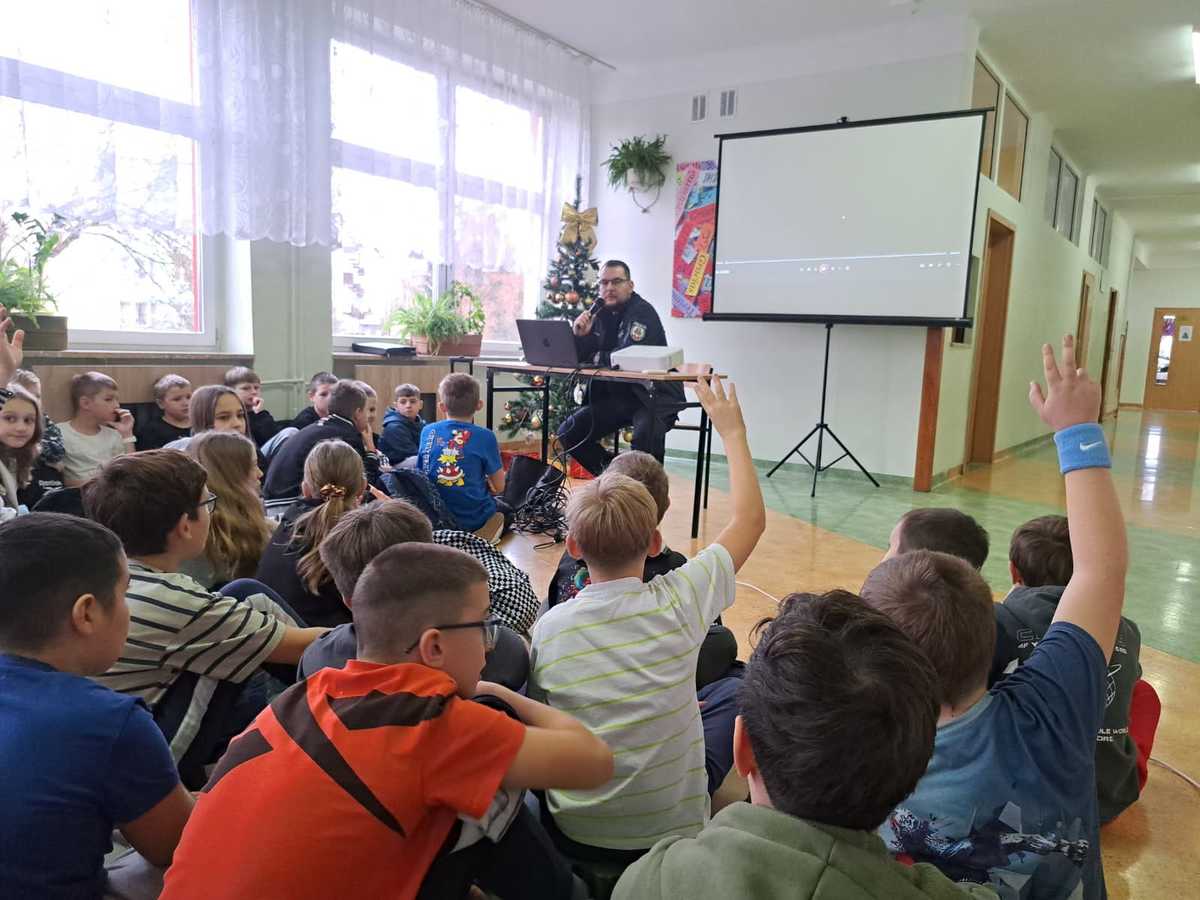 Bezpieczne święta i sylwester - spotkanie dzielnicowego z uczniami szkoły podstawowej