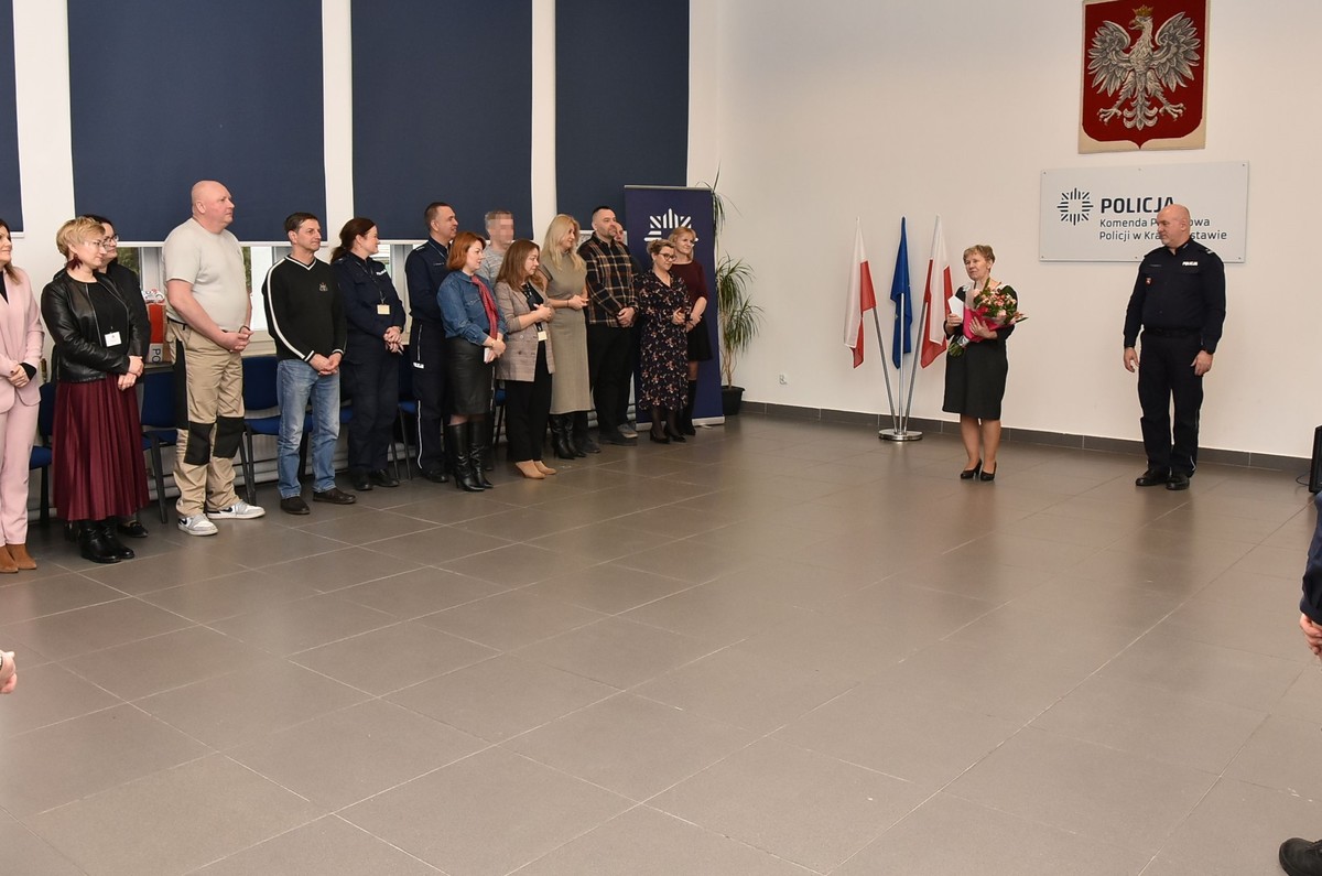 Dziś w Komendzie Powiatowej Policji w Krasnymstawie odbyło się uroczyste pożegnanie Pani Teresy Pisarskiej, która po blisko 28 latach pracy przeszła na zasłużoną emeryturę. Przez lata dała się poznać jako sumienna i zaangażowana pracownica, ciesząca się szacunkiem współpracowników. Z tej okazji podziękowano jej za wieloletnią pracę oraz życzono zdrowia i pomyślności na nowym etapie życia.