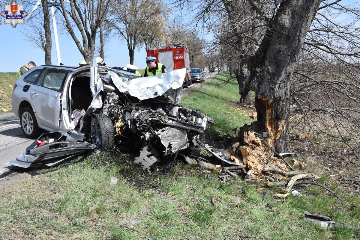 Na miejsce skierowano policjantów, którzy potwierdzili zgłoszenie. Jak ustalono, 50-letni mieszkaniec gminy Biłgoraj, kierujący samochodem marki Skoda, podróżował sam i był trzeźwy. Mężczyzna jechał najprawdopodobniej od Żółkiewki w kierunku Krasnegostawu. Z dotychczas nieustalonych przyczyn zjechał na prawe pobocze, po czym pojazd uderzył przodem w przydrożne drzewo.